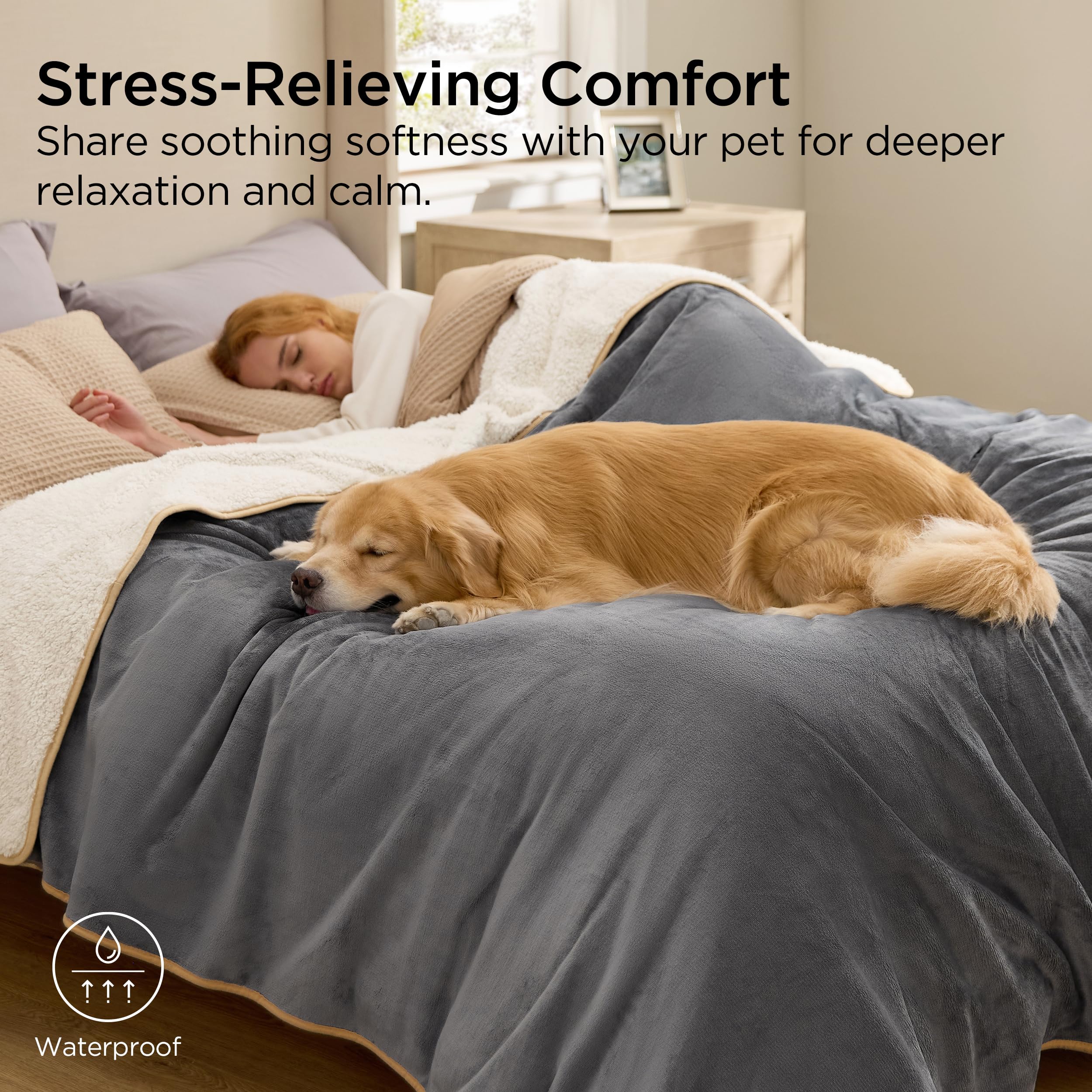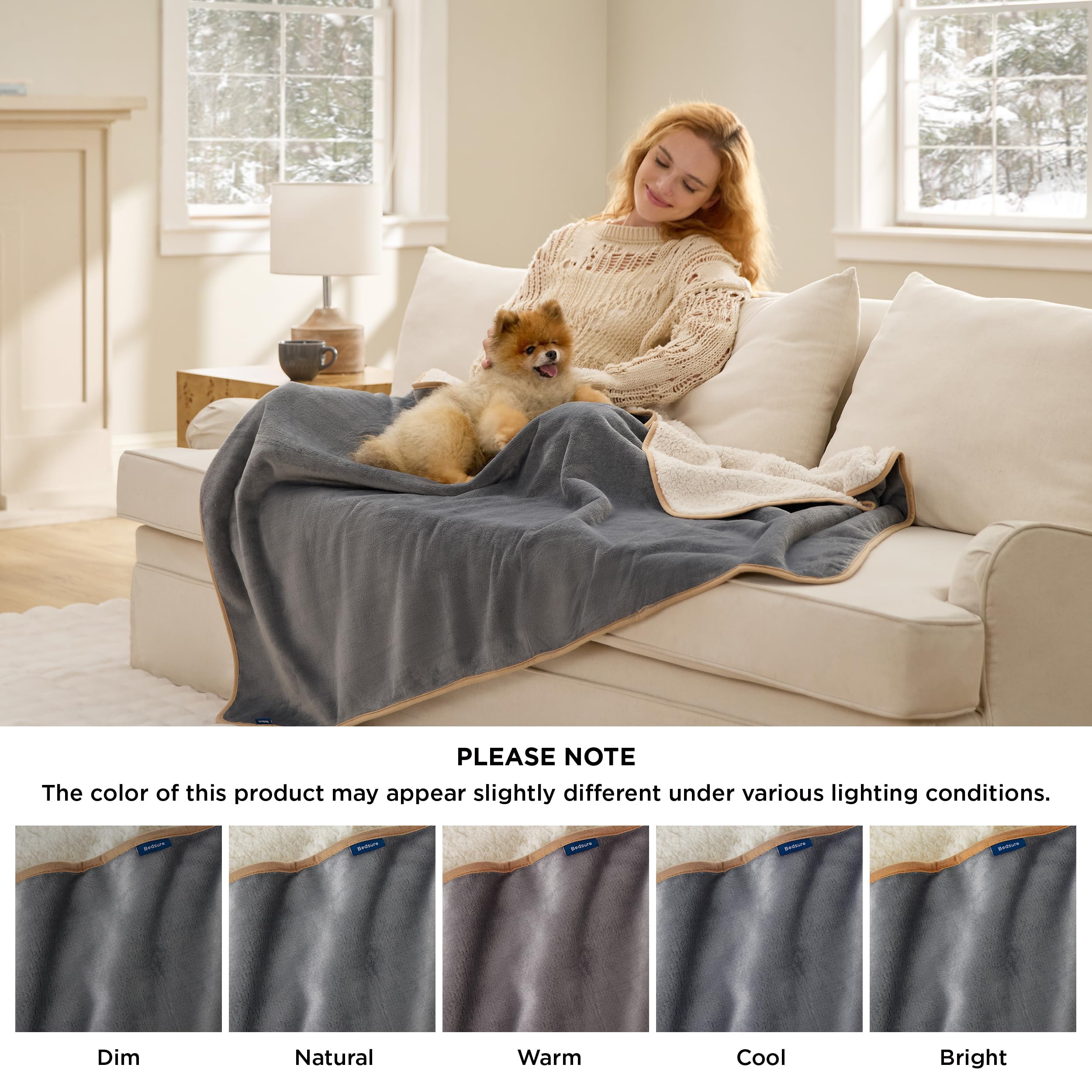 Home Pet Supplies Waterproof Dog Blankets for Medium Dogs Washable – Medium Cat Blanket for Couch Protection, Sherpa Fleece Puppy Blanket, Soft Plush Reversible Throw Furniture Protector, 30″X40″, Grey