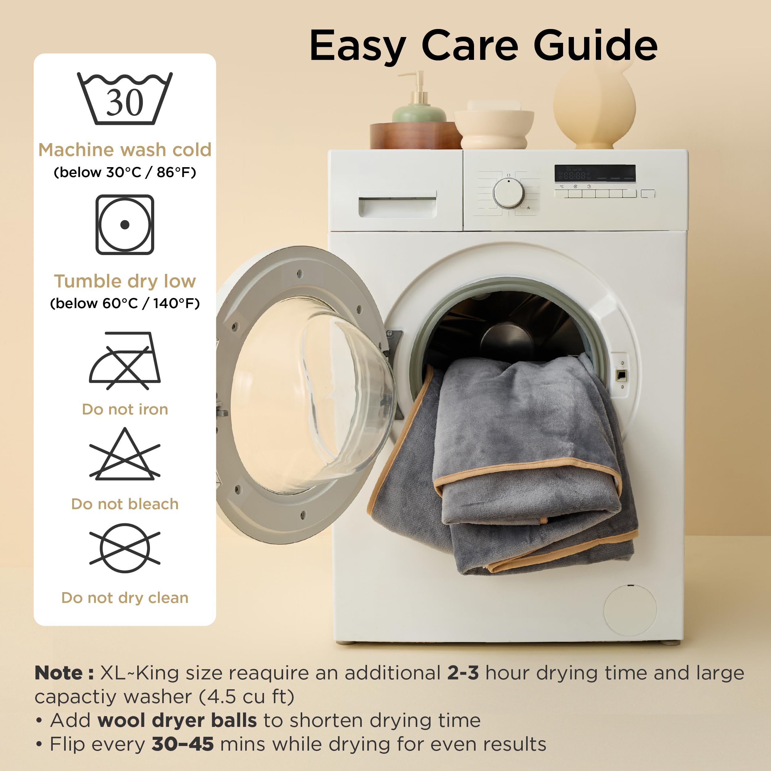 Delicate cycle, Do not bleach, tumble dry low, Machine Wash